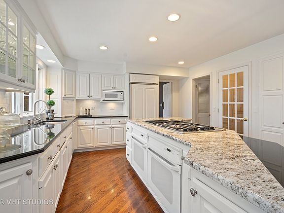 Charming 4 bedroom/4 bathroom Cape Cod with 3-car garage on interior lot in Barrington's Glen Acres neighborhood. Features include spacious floor plan, hardwood floors throughout & crown molding. Gracious foyer opens to living room with wood burning fireplace adjoining the formal dining room. Light bright kitchen with white cabinetry, granite counters, subway tile backsplash, tiered island/breakfast bar, wet bar with wine refrigerator & separate eating area open to generous family room with wood burning fireplace & heated sunroom. Master bedroom suite with walk-in closet & marble bathroom. Second ensuite bedroom with sliding barn door to luxe bath with walk-in shower & slipper tub, playroom & walk-in closet. Two more second floor bedrooms share updated hallway bathroom. First floor also has an office/possible 5th bedroom with full bathroom. Mud room equipped with custom storage cubbies accesses the side porch & garage. Beautifully finished lower level with Hardieboard wainscoting showcases recreation room, exercise room & stone bar with wine & beverage refrigerators. Brick walkways, porches & back patio, second concrete patio with firepit, expansive front & back yards, professional landscaping & mature trees & plantings. Excellent Village neighborhood close to Metra, shops, dining, A+ Barrington HS & Hough Elementary.