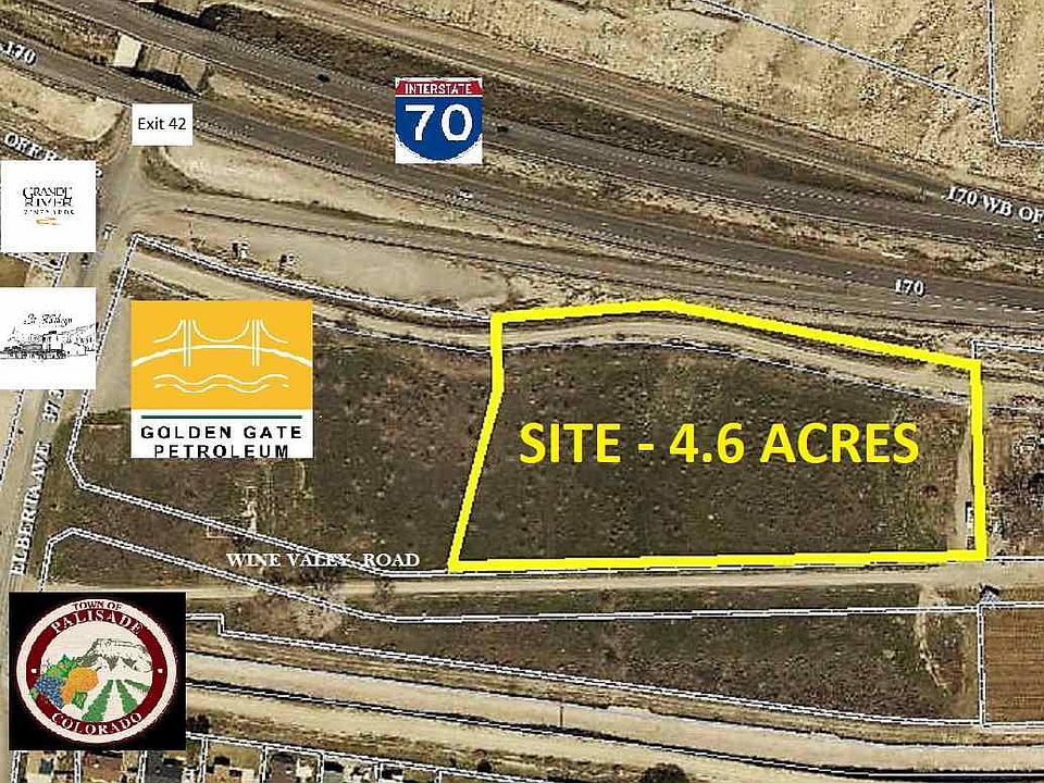 Rare opportunity to purchase vacant land along I-70. Land located at Palisade I-70 Exit 42. Over 600 ft. adjacent to I-70 to the north and Wine Valley Rd. to the south. Annexed into the Town of Palisade, Zoned Hospitality. 4.6 acres located adjacent to Golden Gate Petroleum. Gas and Convenience store. Can be further subdivided to 2 acres.