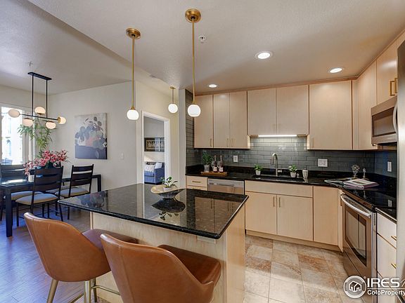 Revel in the coveted Boulder lifestyle in this thoughtfully remodeled and impeccably maintained condo facing the courtyard with views of the foothills. Highly desired Vistoso is a secured, elevator-accessed building offering low-maintenance living. This 2-bed/2-bath unit features an open floor plan, custom craftsmanship, and modern finishes. The gourmet kitchen features designer lighting, Kraft Maid cabinets, a pantry with pull-out trays, a Blanco granite composite sink, a large island, porcelain floor tile, and more. New HVAC system as well. An unbeatable location, with easy access to Thunderbird Lake and Park, Flatiron's Athletic Club with a pool and tennis, restaurants, cafes, yoga, shopping, and more. Within walking distance to the CU campus and only three miles to Pearl street with easy access to Denver. Fantastic community amenities include an on-site athletic center, a courtyard with a fountain and community grills, underground parking, and access to a storage unit.