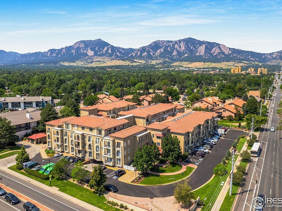This beautifully updated 3-bedroom, 2-bathroom condo offers 1,387 SF of modern living space with iconic Flatiron views. Recently refreshed with new paint, wood flooring and carpeted bedrooms, this home provides both comfort and style. The spacious living room features a gas fireplace, perfect for cozy nights in, and large sliding glass doors that frame breathtaking Flatiron views. A private patio off the living room offers the perfect spot to unwind. The updated kitchen is a chef's dream, with a gas range, dishwasher, microwave, full-size fridge/freezer and large center island to make meal prep a breeze. The open layout ensures seamless flow between the kitchen and living spaces, making it perfect for entertaining. The condo also includes in-unit laundry for added convenience. Each of the three bedrooms is generously sized, with large sliding glass doors to enjoy gorgeous views of the Flatirons. The expansive primary suite offers a large walk-in closet and a roomy ensuite bath with double vanities, a soaking tub, and an additional stall shower. The two guest bedrooms share a full bathroom. Enjoy the community amenities, including a gym, a courtyard with grilling and entertaining space, elevator access, and an underground parking spot close to the elevator. An additional storage locker provides extra space for your belongings. The condo also offers the convenience of an exterior entrance, surrounded by green space perfect for pets, along with ample above-ground parking for easy arrivals and departures. Strategically situated just off the Foothills Parkway, this condominium offers easy access from Boulder to Denver. Shopping, dining, schools and world class trail systems are just steps from your door. This condo combines the best of modern living with Boulder's breathtaking natural beauty!