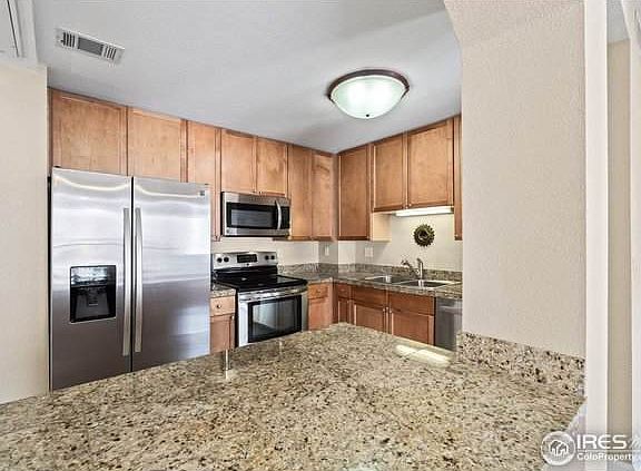 Beautiful corner condominium in Vistoso with views of the mountains from the primary bedroom and balcony. Watch the Folsom Field fireworks from the comfort of your own home! Both of the large bedrooms have walk-in closets. They're located on either side of the open living area - perfectly private for roommates or a separate home office. Two full baths, high ceilings, stainless appliances, beautiful floors. Includes one parking space and storage unit in the underground garage. Vistoso is a secure building with elevators, a work-out room and pretty courtyards. It is located close to grocery stores, restaurants and shops. Easy access to campus, downtown Boulder and US36.
