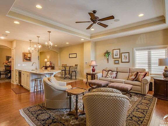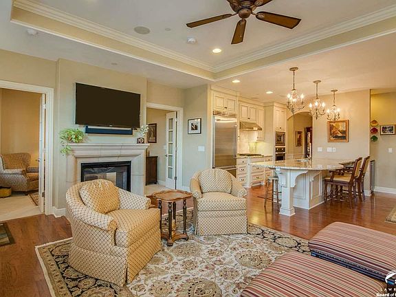 Breathtaking Ground Level living at Bella Sera with private outdoor access to a patio and yard space. This former model unit features high end cabinetry from Custom Wood Products and Viking appliances. The master bedroom has an office area or sitting room with a dual sided fireplace that you can also enjoy from the living room. The luxurious master bath features a his and her vanities, an oversized jetted tub and a bench in the shower.