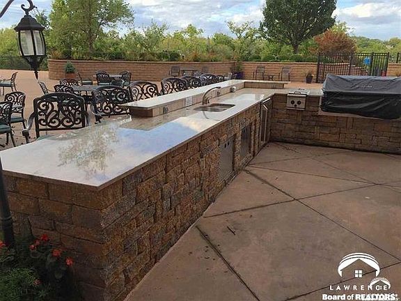 Super sharp BELLA SERA CONDO w/southern skyline view. Great space, nice master BR/bath suite, guest BR & full bath, plus large dining room which opens to huge kitchen w/large island. Granite/Stainless appliances, hardwood floors in living, dining & bonus room. Ceramic tile in entry/kitchen. Gas range, custom cabinets, washer/dryer, two terraces, & huge living room w/fireplace. Amenities include pool, media room, outdoor kitchen, workout room, common kitchen & living area, parking & storage. Close to KU.