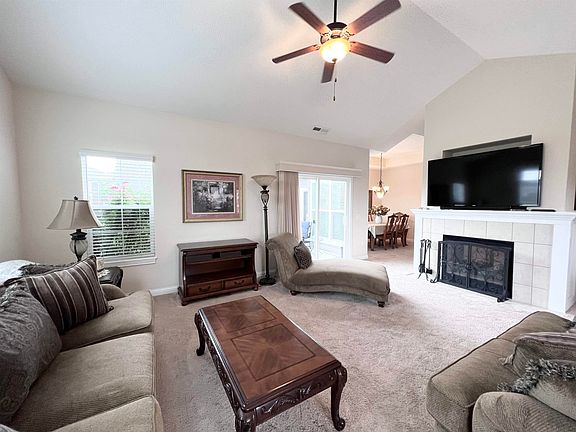 Fabulous 2 bedroom 2 bath condo features large living room with great views and a see through gas fireplace. Spacious kitchen is fully applianced and offers granite countertops, dark wood cabinetry, a seated bar, and a pantry closet. Enjoy dinners in formal dining area that is open to kitchen. Main bedroom exits onto back patio and has plenty of wardrobe space with walk in closet. Main bedroom bath is complete with double sink and extra large zero entry shower. Secondary bedroom and bath are across this split floor plan for plenty of privacy. Additional features are large laundry room, 2 car attached garage, private back patio, neighborhood clubhouse and pool.