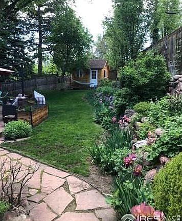 Welcome home to South Boulder! This light and bright 4 bed 2.5 bath Majestic Heights home has been lovingly and well maintained and boasts a spacious open kitchen, dining, and living area with a travertine wood-burning fireplace, hardwood floors, and plenty of windows that bathe the area in natural light. The primary bedroom is on the main level with an en-suite bath. On the lower level you will find 3 well lit bedrooms and a full bath. The south facing backyard is an amazing oasis with fully irrigated custom landscaping and gardens, fruit trees, spacious upper and lower decks, hot tub, play house, irrigated garden beds, storage shed, and plenty of room to relax and play. Owner-owned solar, Nest system, all new interior paint. Garage is set up as office space with heat and AC - can easily be converted back. Unbeatable location with close proximity and quick and easy access to Tantra Park, Table Mesa shopping center, open space with trails, grocery stores, shopping, and restaurants.