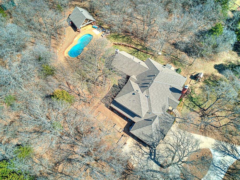 Welcome to your own private oasis, tucked away on a stunning wooded lot! This exceptional property offers a rare blend of privacy, luxury, and convenience. This home is designed for comfort with spacious living areas, quality finishes, and views that bring the beauty of nature indoors. With 5 bedrooms, an office and a flex space/bonus room, you'll never be short on space. Don't miss the hidden closet in this home underneath the staircase. Step outside to a covered patio overlooking your own backyard paradise—an in-ground pool surrounded by mature trees, creating the perfect setting for summer days and evening gatherings. A true additional dwelling unit on the property provides endless possibilities, whether you need a private guesthouse, pool house use, or just a private space as a home office. Located within minutes of top-rated Edmond schools, shopping, and dining, this property offers the best of both worlds—seclusion without sacrificing accessibility. Interstate access is just a short drive away, giving you quick access to local shopping, and an array of restaurants. Just in time for summer- the pool is open and ready for your enjoyment all summer long! This home comes with a Class 4 impact resistant shingle to help keep insurance costs as low as possible. This is more than just a home—it’s a lifestyle. Properties like this don’t come along often, and when they do, they don’t last.