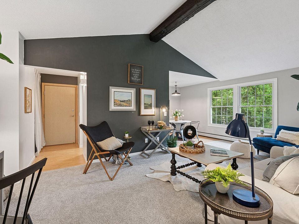 Discover this pristine, move-in-ready 2-bedroom, 1-bath condo—a hidden gem in a highly sought-after location. The spacious, open floor plan is enhanced by vaulted ceilings and large windows that flood the space with natural light. Freshly updated with new paint and carpeting, this unit offers a classic, cozy feel. The recently renovated bathroom features many updates for a bright, fresh space. Both bedrooms are generously sized, providing comfortable and private retreats. A truly unique find for this association, the unit includes two exclusive garage stalls plus an additional parking space - 3 total! Enjoy the heated outdoor pool, green spaces, and nearby bike and walking paths. Connect effortlessly to area lakes, beaches, and parks for endless outdoor recreation. Rentals are allowed. Situated in an ideal location, you'll have easy access to a variety of restaurants, shopping, major roads, and public transport. This condo offers the perfect blend of updated surroundings, convenient location, and care-free living.