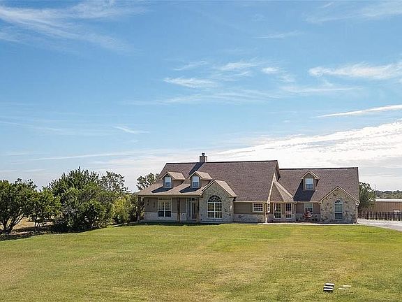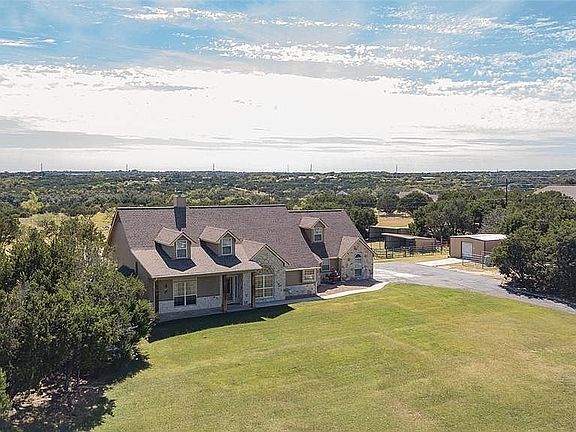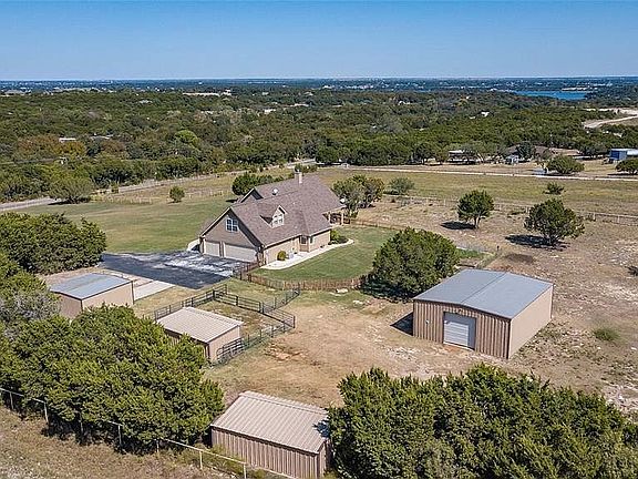 This fantastic country home sits on 5 acres that are fully fenced and cross-fenced. The property also offers a 30x40 shop with electricity and roll up door, storage building 18x30 with ramp, 2 loafing sheds,as well as a greenhouse. The home sits high on a hill and offers panoramic views. Flexible floor plan with 3 bedrooms down with a 4th up or bonus room as needed. Split bedroom arrangement offers fantastic privacy to all. Upgraded kitchen with quartz counters and backsplash. The master bedroom on the 1st level is large with direct access to the back patio. Jetted tub and dual vanities. Don't miss this fantastic opportunity to have 5 acres in Hood county just minutes from town.
