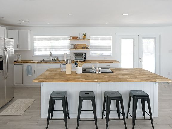This newly renovated 3-bedroom, 2-bathroom home offers 1,350 sq. ft. of living space and is fully furnished. The living room features ample natural light and connects to an eat-in kitchen equipped with stainless steel appliances, including a refrigerator, oven, dishwasher, and comes fully stocked with kitchen ware. Each bedroom is spacious, with a large master suite and tub/shower combination for the additional bedrooms. The property includes essential amenities such as air conditioning, heating, and high-speed internet access. Exterior features include a large fenced in backyard and patio, providing outdoor space for relaxation. Additional conveniences include a washer/dryer in unit, ample storage space, and flatscreen TVs are mounted in each room. The home is wheelchair accessible and smoke-free, making it suitable for a variety of lifestyles. This is a dog-friendly rental. Please contact me with any questions. No smoking. Up to two dogs allowed. First month rent and deposit due at signing.