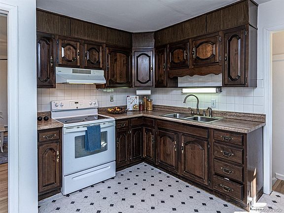 - Description: Wood Cabinets, Linoleum Floor, Eating Space, Stove/Oven, Refrigerator
