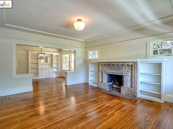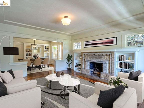 This charming, move-in ready, Craftsman 2-bed/1-bath home features many upgrades and amenities. Enter into a brightly lit living room with beautiful inlaid hardwood floors crafted with meticulous detailing. Living room picture windows provide abundant daylight. The open dining room flows into the living room and features custom cabinetry, marble-top sideboard and large windows. An updated kitchen that will make cooking family meals and entertaining a joy features custom cabinetry, granite counters, updated flooring, sink, faucets, Dacor stove, and recessed kitchen lighting. The bathroom includes modern appliance and cabinet upgrades. Freshly painted bedrooms boast large windows and hardwood floors. The laundry room features floor, lighting, and cabinetry upgrades. Many other systems have been updated or added including EV car charger in the detached garage. Located in Oakland's warm belt and across the street from Maxwell Park. An express bus makes commuting to SF easy.