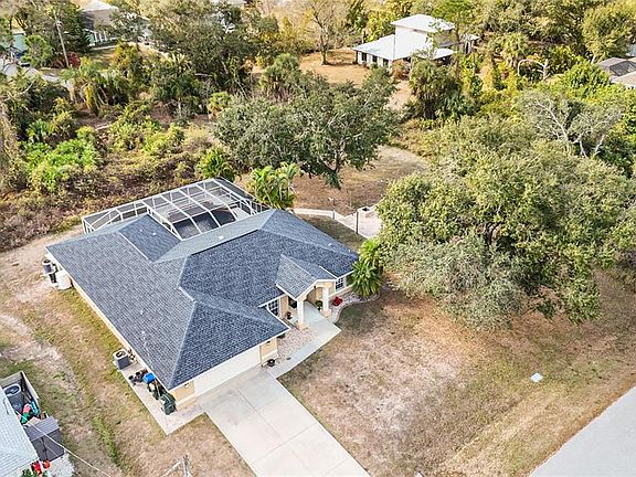 *3D VIRTUAL TOUR* Welcome to this absolutely gorgeous, well-maintained 3 bedroom, 2 bath, 2 car garage, CUSTOM POOL home, perfectly situated on a DOUBLE LOT, with over 2,000 square feet of living space. This home offers the ideal blend of comfort, space, location & value. As you arrive, you are greeted by tasteful exterior lighting, gutters, & lush landscaping accented with pebble rock, palm trees, & vibrant flowering plants. The cleared lot next door feels straight out of a fairy tale, featuring an open paver patio with a firepit & string lights for evening ambiance. A majestic oak tree provides shade & charm, creating the perfect spot for a tire swing, quiet relaxation, or memorable gatherings. Step inside & prepare to be impressed by the expansive living areas & beautiful architectural details. High vaulted ceilings, crown molding, updated light fixtures, coastal-inspired paint colors, faux wood blinds, & a central vacuum system enhance the home throughout. The inviting living room welcomes you from the foyer & offers a wonderful space to relax with friends & neighbors. The open-concept chef’s kitchen is thoughtfully designed & features granite countertops, solid wood cabinetry with crown molding, stainless steel appliances, a closet pantry, plant shelves, & a center island accented by an industrial-style light fixture. The island provides ample prep space while the extended breakfast bar offers additional seating overlooking the main living areas, perfect for staying connected during meals and entertaining. A cozy breakfast nook sits nearby, ideal for enjoying your morning coffee while taking in peaceful backyard views. A formal dining room showcases a striking pendant light & large front windows that allow natural sunlight to fill the space, creating an elegant setting for home-cooked meals & special occasions. After dinner, head to the spacious family room, perfect for movie nights or relaxing evenings at home. The primary suite is a true retreat, offering dual walk-in closets, private lanai access, & a spa-like en-suite bathroom. The primary bath features dual vanities & a Roman walk-in shower with built-in bench & aquarium window. On the opposite side of the home, the desirable split bedroom floor plan provides privacy for guests. Each guest bedroom includes a window, ample closet space, carpeting, & ceiling fan. The guest bathroom doubles as a pool bath & offers a vanity, mirror, light fixture, tub & shower combination. Just off the kitchen is an interior laundry room along with an additional utility room complete with a utility sink, shelving, & washer and dryer hookups. Sliding glass doors lead to your private backyard oasis, the epitome of Florida living. The oversized screened lanai includes a covered area ideal for outdoor dining & relaxing. Take a refreshing dip in the custom heated saltwater pool featuring a waterfall & in-ground spa. An additional open lanai space provides even more room to entertain, grill, gather around the firepit, relax in a hammock, or soak up the Florida sunshine. No deed restrictions, no HOA fees, & no flood insurance required. Conveniently located in North Port, close to shopping, dining, golfing, fishing, entertainment, & medical facilities. Nearby spring training stadiums, award-winning beaches, Wellen Park, & the new Sunseeker Resort make this location even more desirable. Don't wait! This home truly has it all. Schedule your showing today & start living the Florida lifestyle!