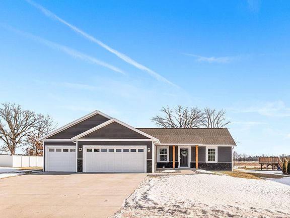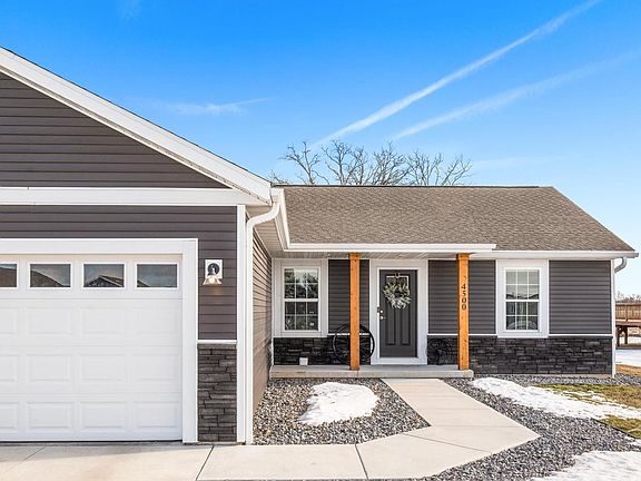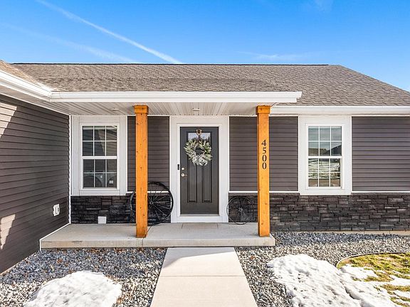 Welcome to 4500 Moreland Road, a 2022 new construction home, located in Plover?s Village Wood Meadows Subdivision. Boasting all the new-home feel without the hassle of putting in a lawn, landscaping, and more, you will know this 3-bedroom, 2-bathroom home is the right fit from the get-go. From the covered front porch with cedar pillars and dark stone accents, step into vaulted ceilings, an open-concept layout, and a sought-after California split floor plan. Gorgeous eat-in kitchen offers custom maple cabinetry with soft-close hardware, a large island, stainless steel appliance package, dual pantries, and direct access to your outdoor grilling area. The freely flowing main living area, lined with beautiful, low-maintenance LVP flooring, provides the perfect space for everyday living and hosting your favorite events. King-sized primary suite provides a relaxing retreat with walk-in closet and private bath with dual vanity and shower. The southern wing of the home provides two additional guest rooms and a second full bathroom. Main-floor laundry is super convenient and makes aging in