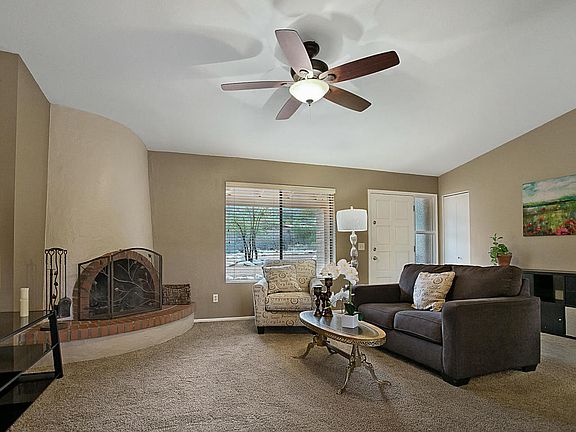You will fall in love with this beautiful 3 bedroom 2 bath home situated on a .38 of an acre lot boasting mountain view, privacy and pebble tech swimming pool. 2 car garage with built ins, exterior just repainted, tastefully and skillfully renovated bathrooms, new counter tops, back splash and stainless steel appliances, laundry room every homeowner would want to have, ceiling fans in all the rooms, interior paint featuring contemporary color choice, wood burning Beehive fireplace and dual cooling. All appliances and window covers convey. Absolute must see.