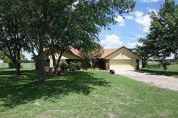 Surrounded by blissful countryside, this lovely 3 bedroom plus an office, 2 bath home sits on 1.7 beautiful acres. Large trees shade the front of the home for enchanting appeal. The interior is filled with upgraded carpet and tile. A vaulted, exposed beam ceiling with a skylight provides the perfect ambience in the great room which also has a fireplace with a wide brick hearth and wood mantle and a door to the patio. Adjacent is the combination dining room and kitchen which are separated by a breakfast bar. The dining room offers a lovely view of the backyard from the bay window. The kitchen includes tons of cabinet space and a glass cook top stove. An abundance of space can be found in the master bedroom which includes a huge office. Both the master bedroom and office have lighted ceiling fans and the office has a French door to the patio. The master bath has a long vanity with seating area and a tile surround shower. Minor bedrooms have carpet and lighted ceiling fans and one includes a bay window. The covered patio is the gateway to the refreshingly lovely backyard with a valley view. Amenities include a partially enclosed room on the patio great for a plant room, fruit trees and an upgraded dual zone air conditioner.