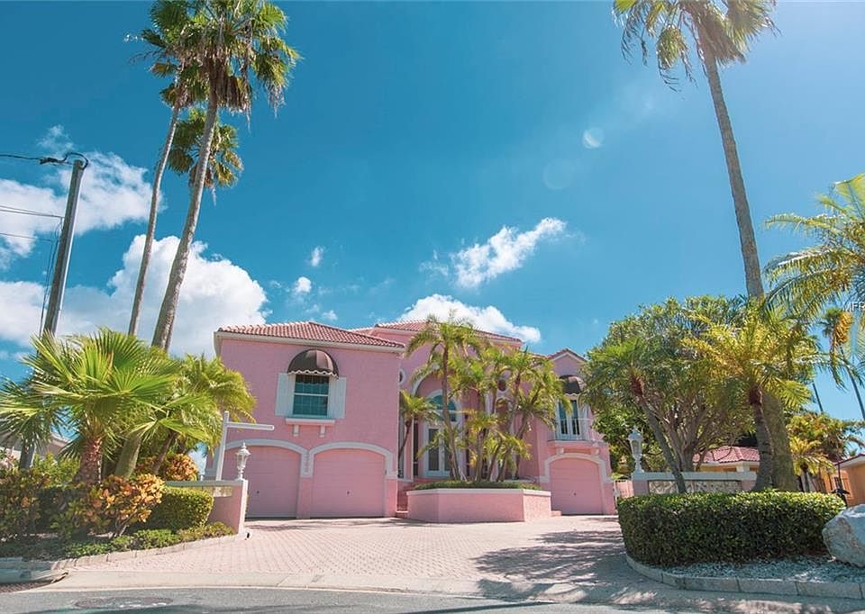 HUGE PRICE REDUCTION -200k. Dreaming in Pink, in your own Don Cesar on the Bay! Enjoy Wide open water views of Boca Ciega Bay. You must experience this striking waterfront Estate with its Grand entry way w/ 20ft soaring ceilings accented with 15" crown mouldings! Features include: Spacious open floor plan, formal living & dining areas, outdoor 45' covered lanai with wraparound pool, outdoor shower & pool bath surrounded by lush tropical landscaping. The spacious kitchen is thoughtfully planned to provide for the ultimate lifestyle, featuring custom designed cabinetry, warming drawer, compactor, stainless appliances and solid surface counters. Low - E insulated windows and doors for energy efficiency and wind resistance. Over sized master suite w/ private outdoor balcony overlooking the water. Master bath w/ double sized spa tub for two with his and her water closets, bidet and walk in shower. Generous walk-in master closet w/custom California styled cabinetry and natural lighting. There's an upstairs media /exercise Rm. w/ outdoor balcony. Multi zone A/C units, 2 water heaters, set up for generator w/transfer switch panel. There's a large unfinished attic that can be easily converted to additional living space. Walk to White sands of St. Pete Beach, bike to local restaurants or boating from your "private dock" Just minutes from I-275, this spectacular home boasts its prominent location with deep water dockage and safe harbor for your motor or sailing yacht w/direct access to the Gulf of Mexico.