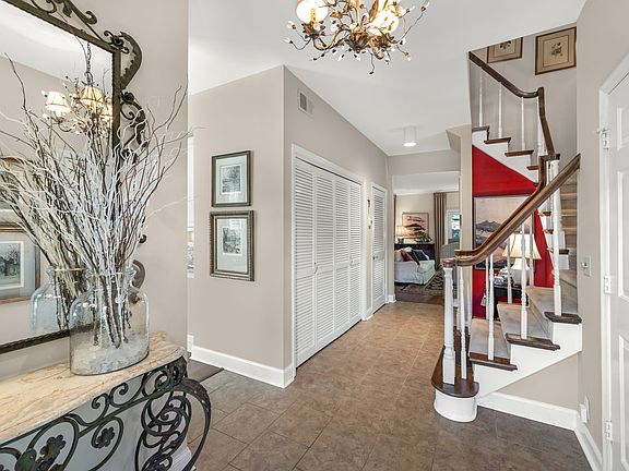 The kitchen was remodeled just two years ago and features stainless steel appliances, a gorgeous travertine backsplash, and plenty of storage. All closets were designed by the owner, an interior designer, and built by The Closet Company, ensuring every inch of space is both functional and beautiful. The living room is warm and welcoming with an electric fireplace that adds the perfect touch of coziness.