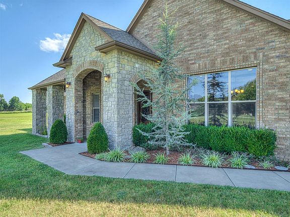 Custom-built with game and a theatre room up, 4 full & 1.5 bath downstairs w/3 car garage and gigantic inside utility/mudroom. Huge kitchen w island & separate beverage warming stations plus formal dining. Cozy living room w/fireplace leads to patio, pool & outdoor kitchen area. Detached shop 2400 sq ft (40x60) with room for RV, Boat or many toys; 14x30 pool (15k gal), brick pool house w/outdoor entertaining kitchen. Smart house & all equip stays. Close to Turnpike & Main street shopping. Horses permitted