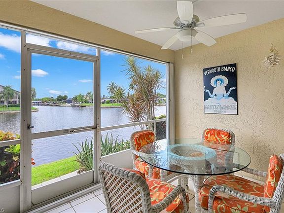 EASY TO SHOW. Ground Floor Condo directly on the 200+ Foot Wide Rubicon Canal with Intersecting Canal Views! Absolutely Stunning views of one Cape Coral's widest canals. This Corner Unit offers a 1,022 SF open floorplan unit with 2 bed and 2 baths sold furnished and ready to start enjoying, vacationing, or vacation renting right away! Moderately updated and remodeled over time to feature newer stainless appliances in the kitchen (2 year old fridge) newer carpeting in the bedrooms only 1-2 years old and newer master and guest bedroom furniture. Master features water views of intersecting canals and down the Rubicon. Generously sized guest bed and full guest bath. Large patio offers sweeping water views and accordion shutters, security or storm protection is as easy as pulling the shutters shut. Awesome views of one of Cape Coral's widest waterways the Rubicon. Community is extremely well kept, and close to Downtown Cape, restaurants, entertaining, and beaches.