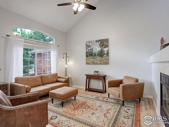 Welcome to this charming, low maintenance townhome in the Arapahoe Farm subdivision in Southwest Ft Collins. You'll immediately appreciate the inviting, gated front porch, perfect for enjoying your morning coffee. The living room features vaulted ceilings with a skylight filling the space with ample natural light. The kitchen is beautifully updated, featuring hardwood floors, sleek gray cabinets, and quartz countertops. The living room, complete with a newly updated gas fireplace, seamlessly connects to both the dining area and kitchen. Upstairs, you'll find a primary bedroom with vaulted ceilings and a walk-in closet along with a secondary bedroom. The finished basement is perfect for guests with an additional bedroom, full bathroom, and a spacious family room. This beautiful townhome also includes an attached two car garage. Take a look today!