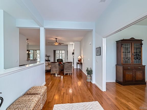 Welcome Home! Steamboat Model home with unfinished basement backing to walking trail! 2053 on main level with 3 bedrooms, office, eat in kitchen, 2 full baths and large covered, screened in back porch to enjoy the Colorado outdoors! This home boasts extended hardwood flooring, granite countertops, stainless steel appliances, rollout drawers, double oven, kitchen island and eat in breakfast bar. The primary bedroom offers a tray ceiling, bay window, ceiling fan and light, 5 piece bath with feature tile, linen closet and walk in closet with organizers and shelving. This immaculate and clean home is ready for new buyer The 2 extra bedrooms can be used for craft rooms, flex space and for your guest to enjoy their space on the opposite side of the home. The large laundry room has a plethora of cabinets(upper and lower) on both sides of the room. The backyard is xeriscaped so easy maintenance and from the front of the home, enjoy the front sitting porch which offers a slight view of the mountains. All appliances including washer dryer. A quick walk to the Aspen Lodge and 48 mile trail system. The 484 sq ft garage offers ample storage and easily fits 2 cars. Enjoy the 30,000 sq ft lodge, over 130 clubs, Pickleball, Tennis, card clubs, events and many activities. Quick close possible and easy to show. Close to shopping, DIA, Boulder, Denver, restaurants and Broomfield Recreation Centers. Don’t miss this well loved home!