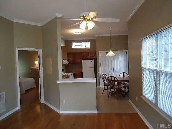 Rare ranch townhouse with oak and ceramic floors, granite, and beautiful paint in a great floor plan. 10' ceilings make it light and bright and the end unit feels like a detached home. Great deck looks out on the trees. MBR has a walk-in closet and en suite bath. Super location near US70 between Crabtree Valley and Brier Creek