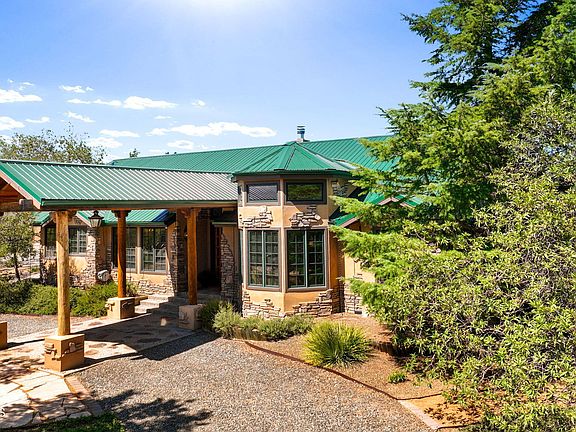 Custom Luxury Rustic Retreat on 8 fully fenced ac in the quiet neighborhood of Crossroads Ranch II in Prescott, Az off the Williamson Valley Corridor. This home boasts of a swimming pool & spa with private deck surrounded by gorgeous mature landscaping, with custom water features inside and out. The property includes a large one level main house, detached one room casita, large detached 1,500 Work Shop /Garage for RV , cars or toys. More than 5 dedicated parking spaces and a Barn with a horse setup having a run-in shed, tack room and hay storage, paddock, and bullpen. Riding trails accessible directly from the property. The compound details include: More than 3,000 sf main house with 3 bedrooms/3 full baths.