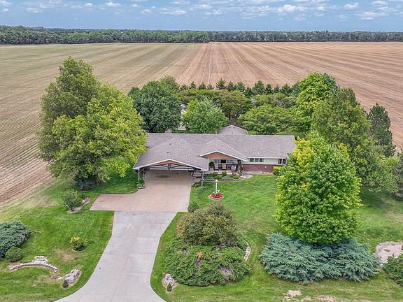 What a great home close to Hesston on almost 2 acres. This property includes a 3 Br, 4Ba, 2-car garage, finished basement (has drain tile inside and out), shop (20x40 with concrete floor), solar panels, new sewer system (lagoon), new roof, newer HVAC system, patio, sun room and beautifully landscaping. The updated kitchen features corion counter tops and all appliances are included. The extra storage container behind the trees and shop is negotiable. The solar is a grid tied (Evergy) net metering system that provides power for the entire property and credits any surplus back to the bill within a period of a month. During normal usage and weather conditions it provides almost all of the power requirements. County inspection has been done and all systems have been approved (fencing around lagoon will be completed before closing).