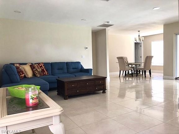 Come and enjoy your private paradise. This home sits on a completely fenced-in backyard w/a beautiful pool surrounded by matured fruit trees, palms and decorative plants. The beautiful open floor plan features a huge living/entertainment and dining area. The lanai is tiled, screened and very spacious specially designed for parties and enjoyment. The Owner's bedroom is so big you can have a separate sitting area. The guest bedrooms are oversize too w/great closets. The Bathrooms have been upgraded w/quarts counters, sinks & faucets. The Kitchen features white cabinets, quarts counters, stainless steel appliances, stainless steel sink & faucet. The spacious laundry room also has white cabinets and washer & dryer. This home also offers beautiful light, oversize floor tile throughout. The well/water equipment is sheltered and there is even a spacious storage shed to store your pool gadgets and more. This wonderful home is located south of Golden Gate Parkway near schools, shopping, restaurants and only minutes away from I75. HURRY AND SEE THIS AWESOME HOME. YOU WON'T WANT TO MISS IT!
