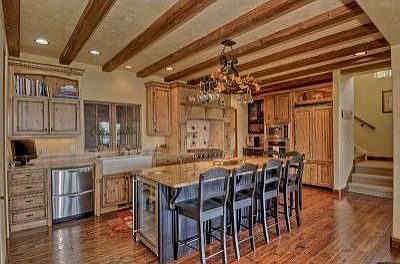 Elegant French Country Home, on a park-like acre of no bank, sandy beach. Built 2006, vaulted ceilings, sculpted hickory floors, Venetian skip trowel plaster, 5 fireplaces, library off master, open kitchen with gorgeous granite tops, hand crafted cabinetry, all the latest appliances & huge walk-in pantry. Up-stairs extra bedrooms, full bath and a generous media room over the 3 car garage. Outside enclosed patio w/fireplace, covered slate porch, gated driveway, separate 24X36 garage/shop.