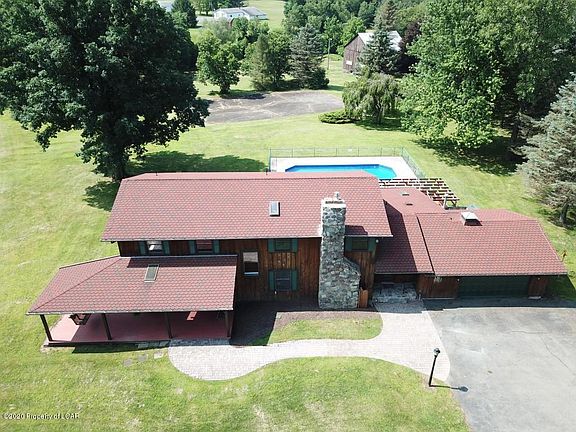 Situated in the center of Mountain Top, PA, this 13.76 acre secluded Farmette features a two-story, 4,514 sf redwood home w/att'd 2 car garage, IG pool, bank barn, pond & creek. Cleared, flat acreage w/a long, winding driveway. The house features an open floor plan with a floor to ceiling fieldstone fireplace (gas insert) and solid wood custom kitchen cabinets with granite countertops.