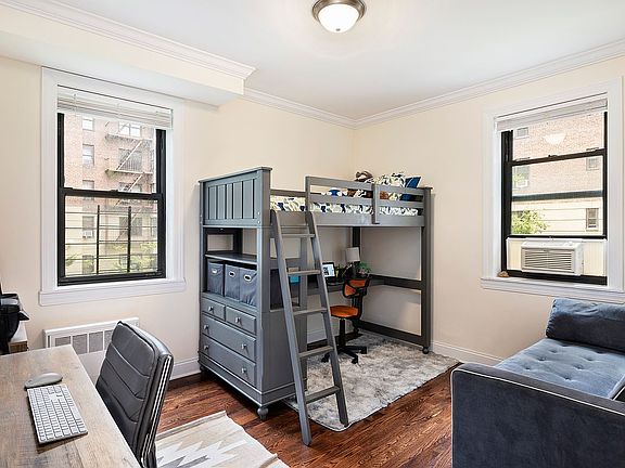 Turn-Key Hudson Heights 2 Bedroom Home. Step inside into this south facing renovated two bedroom located in Fort Tryon Gardens. This beautiful home has been well-maintained and ready for its next owner. The home's layout allows for easy living and entertaining. The open kitchen has been renovated with granite counters and island for casual dining, white cabinetry, grey glass tiling, and stainless-steel appliances including a Whirlpool dishwasher. Adjacent to the kitchen is a dining area that comfortably fits four diners plus additional space for a home office. The spaces are accented with contemporary chrome light fixtures. The living room is generous in size with the ability to accommodate a range of furniture configurations and offering a view into the building's courtyard. The primary bedroom is king-sized and the secondary bedroom equally generous in size with both south and west exposures. The windowed bathroom has been updated with modern white textured tiling and grey tiled flooring. To complete the home there are custom closet systems and dark stained oak flooring throughout. Fort Tyron Gardens is a post-war multi-building complex conveniently located directly across from the 190 A train and Fort Tryon Park. Building amenities include a live-in super, porters, landscaped courtyard, plus on-site laundry, bike storage and parking garage (third party). The neighborhood is rich with a range of culture, food, and nature. Steps away from Fort Tryon Park, it is home to sweeping Hudson River views, Heather Garden, outdoor ping pong and volleyball courts, the historic Cloisters museum and largest dog park in Manhattan. Additionally, there is a range of local eateries including Locksmith Bar, Buddha Bar, La Cantina, Fito NYC, Tampopo Ramen, and Shop Fair supermarket across the street. Travel with ease with Express A train directly across the street (25 minutes commute to Midtown), Local 1 train, Citi Bike dock, and MTA buses on Broadway along with various bus options from George Washington Bridge Terminal. The co-op has made significant capital improvements in recent years, including a brand-new roof, that give it an "A" energy-efficiency rating. The special capital assessment allocates $169.40 per month to this unit. Pet-Friendly. 10% down payment / 90% Financing-------Showing by appointment.