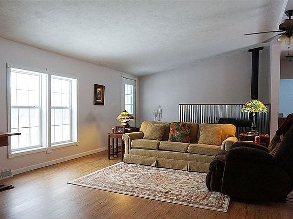 Location! Location! Location! This is a stylish home on 1 acre of hardwoods overlooking the Cedar River Valley. Open concept remodel in 2016 incorporated 1/2 drywall, new insulation, vinyl planked wood flooring, lighting, and white shaker kitchen cabinets. Newer roof has turbo vents and extra insulation to heat home very efficiently. Perfect for cold northern nights is the wood stove with cook top capability. All bedrooms have walk in closets and neutral shade carpet with a slightly raised texture. Private master bedroom on opposite side of the house of the other 2 bedrooms. Central air for the summer, barrier free access and sold with kitchen appliances. The 15 x 30 insulated work shop and (2) 10 x 12 sheds are wired with electricity.