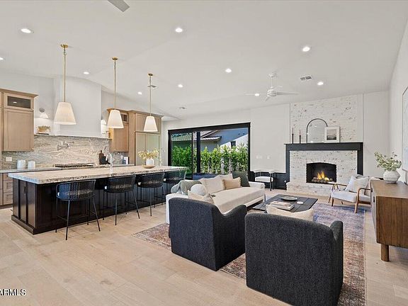 Recently constructed modern farmhouse located in the Arcadia/Osborn neighborhood. This corner lot beauty boasts unparalleled privacy & a sprawling 3,133 square feet, 4 spacious bedrooms and 3 en-suite bathrooms. A welcoming covered front patio ushers you into an airy open floor plan. Vaulted ceilings create a sense of grandeur, while a modern gas fireplace adds warmth and ambiance. The kitchen wows with top-of-the-line appliances, custom cabinetry, and a grand granite island the heart of the home, perfect for entertaining family and friends. Exquisite details include beautiful light oak hardwood flooring, elegant wainscoting, and custom trim work create a timeless, homey feel that caters to today's discerning buyer. Unique tile and stone desig make each bathroom a private spa, while the primary suite stuns with quartz countertops, a large glass and marble shower, a relaxing soaking tub and an amazing walk-in closet. Lots of natural lighting streams in through expansive windows and sliding glass doors, showcasing the back patio with its new hardscape, artificial turf and lush landscaping. They back yard on the south side to the home is a massive 3300 square feet large enough to add a sparking pool or space for RV parking. This is the perfect place to call home.