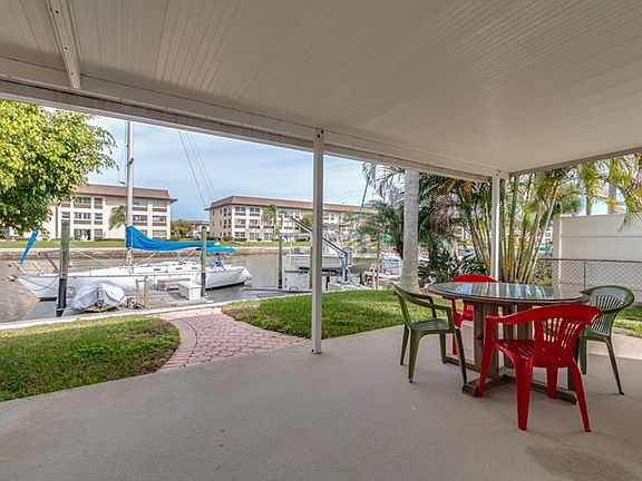 Sailboat water leading out to the Gulf of Mexico at an affordable price! Tastefully updated home with the quality feature of polished terrazzo floors. Walk into the beautiful foyer & you are met with an open & bright floor plan. Relax & get comfy in front of the wood-burning fireplace while enjoying the beautiful water views from the living room/great room. The kitchen features KraftMaid custom wood cabinetry and pull out drawers, Corian countertops, lighting upgrades, GE Profile Advantium speed-cook microwave/oven, reverse osmosis water system, new disposal & a induction stove. Walk into the Master Bedroom Suite & you will be amazed by the size. Plenty of room for a king sized bed. The master bath includes a hydro massage spa with custom pull out steps, towel warmers & a separate steam shower with a 6 gallon inline instant water heater. There is a water softner which serves the entire house and plenty of storage space in both the attic and 2 storage rooms. Step outside onto the covered patio area and follow the pavers down to your private floating dock, lift, davits & boat slip designed for a 38 ft. sailboat and 13 thousand pound power boat, and storage on the dock for all your favorite water sports equipment. Plus, the 2 car garage with workshop area & carport. This home has all the latest updates with 50 year DuraLock Metal Roof, Hurricane Shutters, generator hook up & a Home Warranty is included with the sale. If you are looking for affordable waterfront living, schedule your tour today! You don't want to miss a single sunset.
