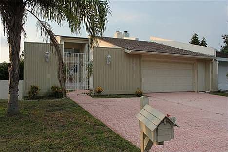 Gorgeous contemporary two-story home on a saltwater canal in Gulf Harbor Woodlands.Open floorplan, cathedral ceiling, fieldstone fireplace in Greatroom. New natural light oak wood laminate floors in living areas. The large Family room is made for entertaining, and leads out to the terraced patio under the swaying palms.The newer kitchen; Sanibel maple cabinets, granite-look countertops, stainless steel appliances, huge snackbar. Upstairs you'll find the guest bedroom which has a full bath of its own, the charming mastersuite, and an open loft area you can use for a den/study/office. The entire home is protected with hurricane shutters, for peace of mind. Oversized 2-car garage. Large pie shaped lot, manicured side lawn with plenty of room for a pool. Great community boasts large heated pool, clubhouse (available for your family events), tennis courts, & boat ramp.Don't miss out, come take a look.