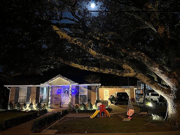Meticulously maintained home on a corner lot. Open floor plan and beautiful brick patio, both great for entertaining. Den has soaring vaulted ceilings and wood fireplace. Kitchen has stainless steel appliances and granite countertops. Master bedroom downstairs. Master bath is finished with travertine. Two bedrooms and jack and jill bathroom upstairs. Large walk in attic space, could be made into fourth bedroom. Double carport and garage.