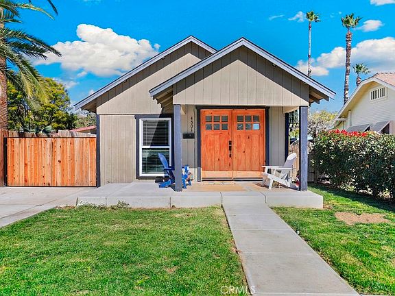 Welcome to 4501 Larchwood Pl located in the Wood Street neighborhood of Riverside. This turn-key Craftsman Cottage was built in 1920 and retains much of its original essence however the upgrades within it are anything but original! The exterior offers great curb appeal and a covered front porch area to relax on. The interior has an open concept with a fresh color palette which provides the perfect canvas for just about any décor. The living room features vaulted ceilings with skylights and on-trend wood paneling. The kitchen has butcher block countertops, subway tile backsplash, stainless steel appliances, and there is a dining area with ceiling fan, room for extra pantry storage, and a slider to the backyard. The bedroom has a ceiling fan and accesses the large industrial themed bathroom with custom tile, sky light, and full-size walk-in shower with waterfall shower head. There is also a laundry closet in the bedroom. Enjoy the large backyard with lush green grass area and concrete slab - the perfect space for entertaining guests! There is also a large wood shed for additional storage space, and the side yard has raised garden beds that are ready for your green thumb. This gorgeous home also has a concrete driveway with pull through access to the backyard offering plenty of space for parking, and is conveniently located near shopping, dining, and more!