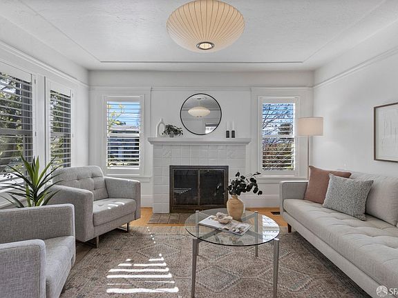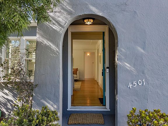 Welcome to your beautifully updated home at 4501 Moraga Avenue, Oakland, CA, a sunny, delightful residence nestled on a charming corner lot. This elegant abode offers two inviting bedrooms and a tastefully renovated bath with newly refinished tub, spread across 898 square feet of thoughtfully designed space. In addition, the finished bonus rooms downstairs, perfect for home office, retreat, or simply extra storage, expand your living space by an additional 250-300 square feet. The stylish renovated kitchen, complete with new appliances in 2020, sets the stage for culinary endeavors. A decorative fireplace and exquisite moldings enhance the living area, while hardwood and tile floors add timeless character. The home features a private entrance leading to a deck, perfect to elevate your outdoor leisure. The attached garage boasts a brand new concrete floor, and the home was also just freshly painted inside. Practicality meets elegance with Elfa Closets, a laundry room with included washer and dryer, and ample private storage. The fenced yard and outdoor storage shed offer further versatility. The roof was coated in 2024, ensuring long-lasting quality for this distinguished residence. Make sure not to miss the views from each bedroom, including charming closet windows