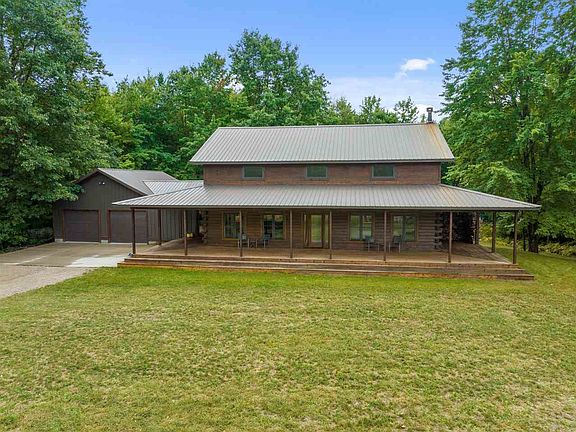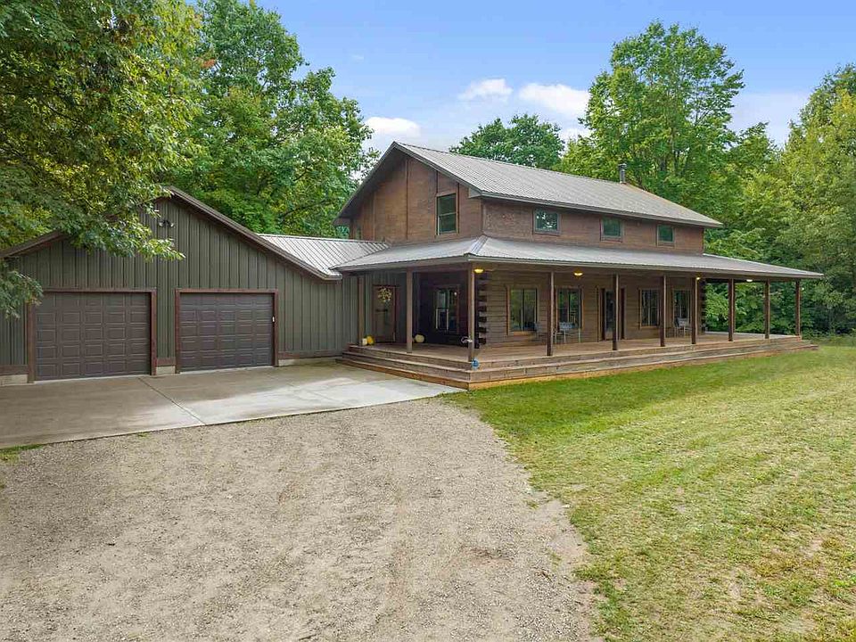 A gorgeous, custom log home offering plenty of privacy and seclusion! This unique property includes Jordan River frontage and 50 acres, and is surrounded on two sides by thousands of acres of state land. The home is spacious at over 4,000 sq ft and has a very open floor plan, but feels cozy with a woodstove fireplace and its log construction. There are plenty of windows for natural light and wildlife viewing from inside, or stargaze from the large wrap around porch. Inside there are 4 bedrooms and 3.5 baths. Store all your land and water toys in the two car garage or matching 50x50 pole barn. This property is a deer/duck hunter's paradise, but also has enough pasture land for gardens, orchards, or horses/animals if desired. Enjoy the pristine Jordan River (a blue ribbon trout stream), canoe/kayak or fly fish from your own property! From the shoreline to the river bend, from the hardwoods to the rolling fields, come play in the North, and rest on the porch.