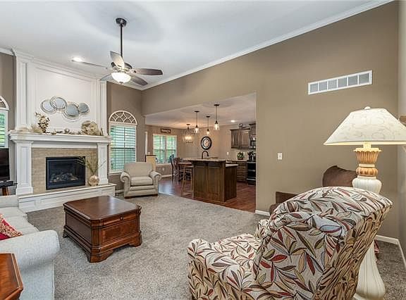 - Features: Carpet, Ceiling Fan(s), Fireplace