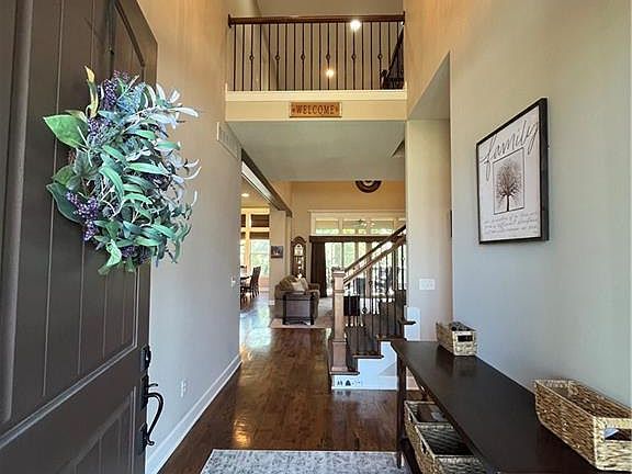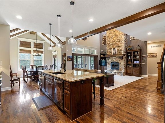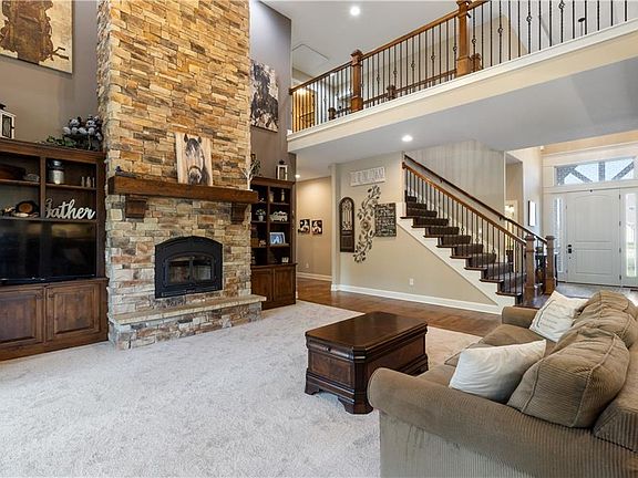 The Amazing Craftsmanship and Upgraded Design features make this 1.5-story floorplan One of a Kind! The Spacious Open Layout, High Ceilings, Hardwood Floors, and the Beautiful 2-story Stone Fireplace that leads to a Covered and Screened Deck create a Vacation-like Ambiance. The large Chef's Kitchen is equipped with an oversized island, granite counters, a Stone range hood, Gas range, double ovens, and a full walk-in pantry with a second refrigerator. You can enjoy your meals in the Elegant Formal dining room or the inviting breakfast area with tall windows and eye-catching Wood Beams. The main floor features a Deluxe Master Suite with access to the covered/screened deck, a stunning master bath with a two-person shower, a large whirlpool tub, and a spacious walk-in closet with access to the main floor laundry. Upstairs, there are 4 large Bedrooms and 3 Bathrooms along with a second laundry. The Lower Walkout level exhibits expansive windows, 9' ceilings, a large family room, a wet bar, media room, and full bath. Additionally, there is 1,000 sq ft of storage and a sizable workshop below the suspended garage with a double-door walk-out storage area. The Outdoor space is equally impressive, with a gorgeous, private, treed lot featuring a patio, fenced yard, water feature and trails through the woods. This home has been built with a lot of Thought and Love, and no detail has been overlooked. Here is your opportunity to own this Exquisite Home on over a Half Acre lot in the Highly Sought after Montebella Subdivision. Amenities include a club house, swimming pool, and trails.
