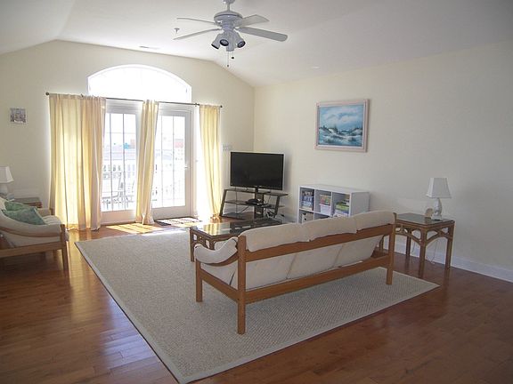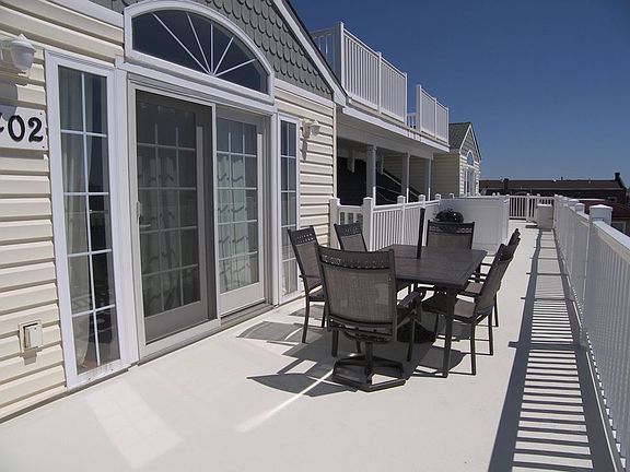 PRICED TO SELL, CLOSE TO EVERYTHING, AWESOME VIEWS - YOU'LL LOVE THIS CONDO! So spacious and larger than most offered at this price point, this top floor condo truly must be seen! It offers expansive views of Wildwood, including the ocean and amusements, and of course the Friday night fireworks. You will really enjoy the spacious deck, it's the perfect place to enjoy the sun. Step inside this bright and airy unit and you'll instantly feel at home, with modern finishes and decor. There is a very generous living room with vaulted ceilings, kitchen with snack bar and sleek granite counters, and dining area, all with hardwood flooring. The bedrooms each are a great size and include huge closets. There is a full bath with tile flooring, and laundry closet with washer and dryer for your convenience. This is a corner unit with windows on 3 sides, only one wall is shared with the neighboring condo - so it's very bright and enjoys a breeze many days. With gas forced air heat and central air, you can comfortably use this unit year round. The unit is well maintained, with attractive paint colors and will be sold furnished. There are 2 parking space for this condo, and both are convenient to access. Once you park your car you can leave it and easily access the beach, boardwalk rides and water parks, fabulous restaurants and nightlife, mini golf, ice cream parlors, shopping, Fox Park and the Convention Center, and so much more. The condo fee is $163/mo. and covers the cost of exterior insurances for fire, flood and liability and common area maintenance. In summer there is a $20/mo. additional charge for landscaping, trash, etc. There is a storage room on the ground level for your beach gear and an outside shower. The condo association has voted to go ahead and address the stairs and the seller will pay that assessment. Please call today to easily show this fantastic condo - it's not to be missed! *** Please note that the square footage quoted was taken from tax records and should be verified by a buyer prior to purchase. ** Summer Rental from July 8, 2018 to July 15, 2018 for $1,450.