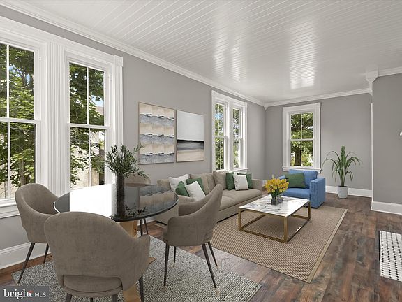 Welcome to this completely renovated bungalow in a charming community of Halethorpe. Originally built in 1922, this home has been thoughtfully updated to maintain its historical charm while offering modern conveniences. Nestled on a corner lot, the property features a new roof and HVAC, replacement windows, and much more. The beautifully landscaped yard includes a detached one-car garage and a welcoming covered front porch leading to the foyer. Inside, luxury vinyl plank flooring, crown molding, and stylish light fixtures create an inviting atmosphere. The spacious living, dining, and kitchen area boasts a striking tongue and groove wood-planked ceiling. The living room is highlighted by a cozy wood-burning stove insert, perfect for relaxing evenings. The kitchen is a chef’s delight, equipped with custom to-ceiling cabinetry, quartz countertops, a breakfast bar, and stainless steel appliances, including a gas range. A subway tile backsplash adds a touch of elegance. The home offers two generously sized bedrooms connected by a full bath. The primary bedroom features a walk-in closet with a built-in closet system, while the full bath showcases design-inspired tile and a tiled tub/shower surround. Ample storage is available in the walk-up attic, which also presents an opportunity to finish for extra living space. The conveniently located laundry room off the kitchen provides access to the unfinished basement, offering additional space for storage. Enjoy outdoor living on the composite deck, perfect for summer gatherings. This quiet, quaint community provides easy access to I-695 and the MARC Train, making it an ideal location for commuters. Don’t miss your chance to own this beautifully renovated bungalow! Property Updates: Roof, HVAC system (gas furnace and AC), windows, vinyl siding, fireplace insert, flooring, kitchen and bath renovations, primary bedroom closet, composite decking, wood planked ceilings, light fixtures, and more! Please note: some photos utilized virtual staging.