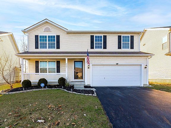The property is a stunning, move-in ready home in the popular Georgesville Green neighborhood. Large updated kitchen with stainless steel appliances, breakfast bar & white cabinetry. The open living room leads into a bright dining area that exudes warmth and natural light Upstairs, a comfortable loft awaits, perfect for a den, home office, or play area. The spacious owner's suite boasts a massive walk-in closet and an en suite bathroom with a soaking tub and shower. Two additional bedrooms offer ample space, one with a large walk-in closet. A full bathroom and laundry room complete the upper level. Outside, a raised paver patio provides a serene setting for the private tree-lined fully fenced backyard.