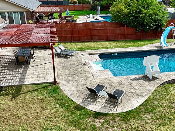 This beautiful, immaculately maintained home features 4 bedrooms, 3 full baths, large fully-enclosed porch, inground pool surrounded by stamped concrete patio on nearly half an acre! An absolute must see, with gorgeous cherry hardwoods, stunning woodwork, vaulted ceilings, skylights and full brick hearth in the spacious living room. Main floor features primary bedroom with coffered ceilings, 2 walk-in closets, en suite bathroom with double vanity and walk-in shower, as well as two additional bedrooms. Head up the extra-wide stairs to large loft overlooking living area, huge fourth bedroom with private bathroom, as well as office and bonus room with abounding storage. Fully fenced backyard with pool, screened-in patio, pergola, and tiered stamped concrete patio! New pool liner & pump, new HVAC, updated lighting and much more!!