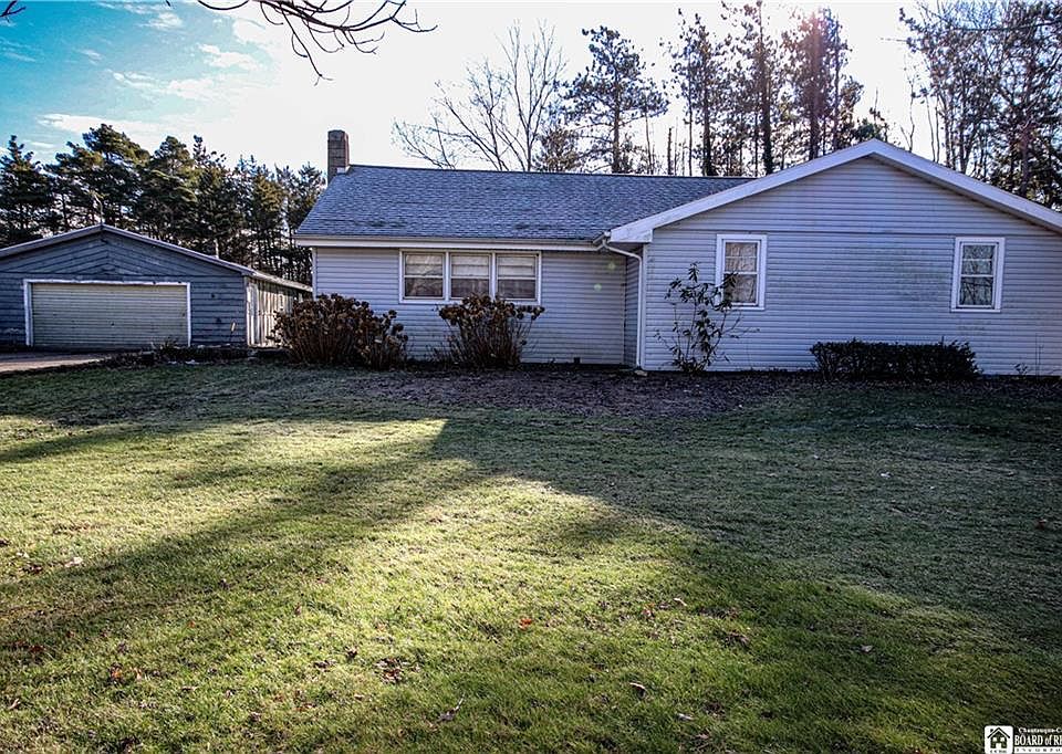 Charming, classic ranch in a park-like setting, close to SUNY Fredonia, and Lake Erie. This home has been owned by the same family since it was built, and many of the original features remain. The Natural woodwork, knotty wood paneling, and built-in shelving give the home a warm and cabin-like feeling. Three bedrooms and an office that could be a smaller 4th bedroom. The kitchen has an island with an oven and cooktop built-in. First-floor laundry, and a full basement. On over 4 acres and a 2 car garage with a large workshop. There is an inground pool behind the garage. The parts are all there for the pool, but there is no guarantee, for starters it needs a liner. The house has been connected to city water, and the well is still there if you want to use it to water your lawn or wash your car. There is natural gas available at the street. The roof, vinyl siding, gutters, and boxed in windows all were done in approximately 2005. The sellers are putting in new countertops in the kitchen, there is a picture of the new countertops. Have a Plan!