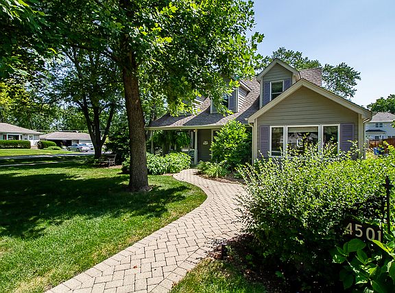 Inviting corner lot in North Downers School district in an area of new builds, close to town, close to Belmont train station (2 min drive, 15 min walk) beautiful landscaping with a lovely front porch! We welcome you into this 3 bdrm/3 bth Cape Cod with an open foyer. Sitting room with French doors, first floor laundry room, full first floor bath, immense Master suite including office, walk-in closet and ensuite bath-separate shower and soaker tub, double sink. Plenty of room for entertaining both inside and out! Kitchen with SS pkg/Corian counters, island, breakfast bar-opens into eating area and family room with gas fireplace, wet bar. Vaulted ceilings and loads of windows-looks out over paver brick patio, fenced in yard creates a bright, airy feeling. Two large bedrooms upstairs are newly carpeted and have their own full bath. Basement is unfinished with office space, utility room, storage room, and a huge concreted crawl. Washer/Dryer negotiable!