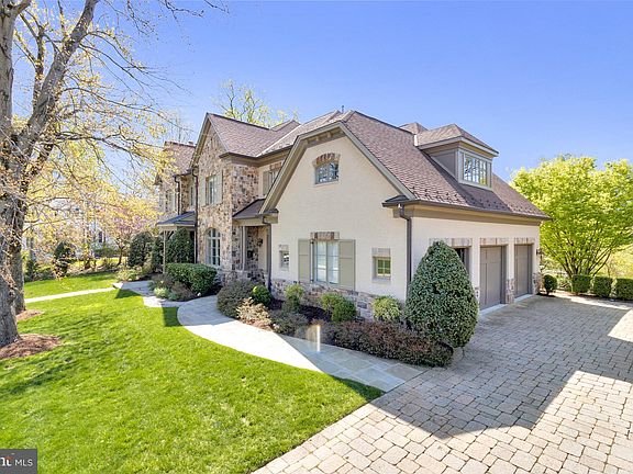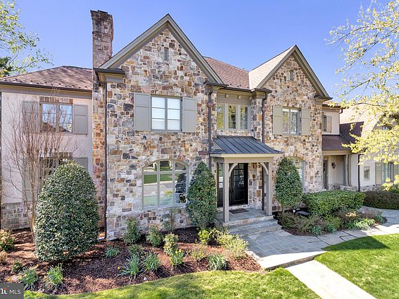 This spectacular home is located on a premium lot in sought-after Country Club Hills. A slate walkway leads to a grand double door entrance, framed by elegant stone and brickwork, with professional landscaping, including mature shade trees and thoughtfully designed privacy plantings. With 5 bedrooms, 5 full and 2 half baths, and 8,200 sq ft of living space on three levels, the space has been transformed with nearly $600k in updates, inspired by Jodi Macklin Interior Design. The main level features 10’ ceilings, espresso-stained hardwood floors, high baseboards and crown molding. The wide central hall welcomes you to a formal living room with a cozy wood-burning fireplace and a separate dining room with wainscoting detail - both bathed in natural light from oversized windows. There is a gorgeous main level office with custom built-ins and expansive windows on three sides. A sleek wet bar, with painted black cabinets, under counter lighting and wine refrigerator, leads to the welcoming family room with a gas fireplace, coffered ceilings, and direct access to the large deck where you can enjoy seasonal views of the Washington Golf course and leafy privacy in warmer months. The impressive gourmet kitchen, with table space for informal meals with friends and family and a butlers pantry, showcases an oversized island with seating for 4, tons of cabinet storage, dramatic light fixtures and high-end appliances, including a six-burner cooktop, warming drawer, double wall ovens and two dishwashers. A family entrance with mudroom area, provides access from the three-car garage, and is conveniently located near a second main level powder room, coat closets and laundry room. Just off the kitchen, a back staircase leads to a private apartment with a full bath and large closet, perfect for accommodating in-laws, a nanny, or guests. The upper level features the spacious primary bedroom suite, with a gas fireplace, oversized windows, two walk-in closets and a separate sitting room that could double as an additional home office. The primary bath has two separate vanities, a soaking tub and separate walk-in shower and separate water closets. Two well-proportioned ensuite bedrooms, a laundry room and a sun-soaked sitting area with custom built-ins and views of Bethesda and Chevy Chase complete this level. The fully finished walk-out lower level, accessed by front and rear staircases, features a bedroom, a full bath, family room with a gas fireplace, media room, exercise room, a bar, and even more flex space, with direct access to a covered stone patio. This meticulously maintained and beautifully designed home offers a luxurious and comfortable lifestyle in a highly desirable location. With its spacious layout, high-end finishes, and thoughtful amenities, this property is truly exceptional.