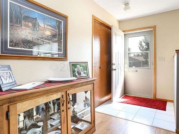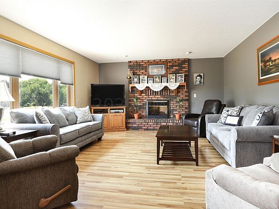 Enjoy the privacy and nature Reile's Acres has to offer. This home is perfect for anyone looking for more indoor and outdoor space. Nestled on a corner lot having almost an acre of land yet only 6 miles from Fargo. The garage is a huge selling feature, 3.5 stalls, 2 service doors, 2 floor drains, epoxy flooring, plenty of work cabinets and storage. There is an extra concrete slab next to the garage to store any large watercraft, trailer or camper. This home has excellent bones and more storage than most would ever need. Right off the garage the seller has added a mud/laundry room for convenience. This home also features a large concrete patio to savor the large backyard outdoor space. Inside the living room features a electric fireplace that could easily return to wood burning if desired.